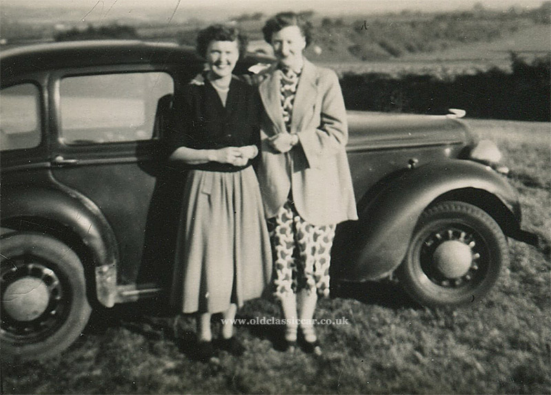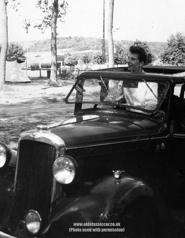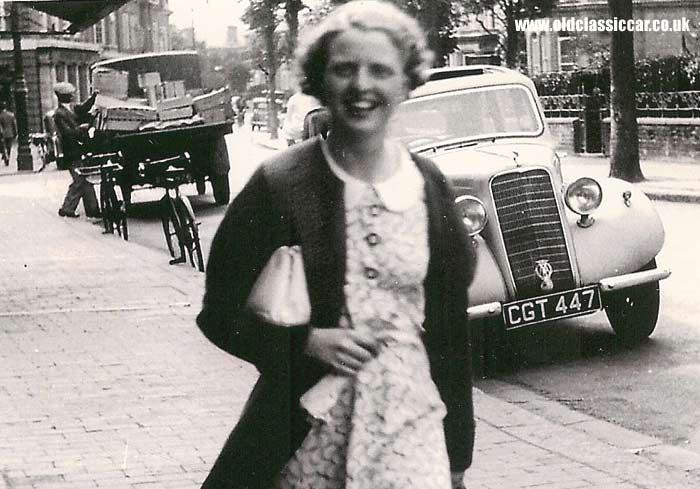 This photograph, sent over by Chris, shows his mother-in-law stood next to her light-coloured car. Members of the oldclassiccar forum identified the car as a c1936 Hillman Minx. Chris agreed to me putting the photo on the main site, so I thought this page would be the best place to put it, so that comparisons can be made with the black example of a 30s Hillman shown higher up this page.