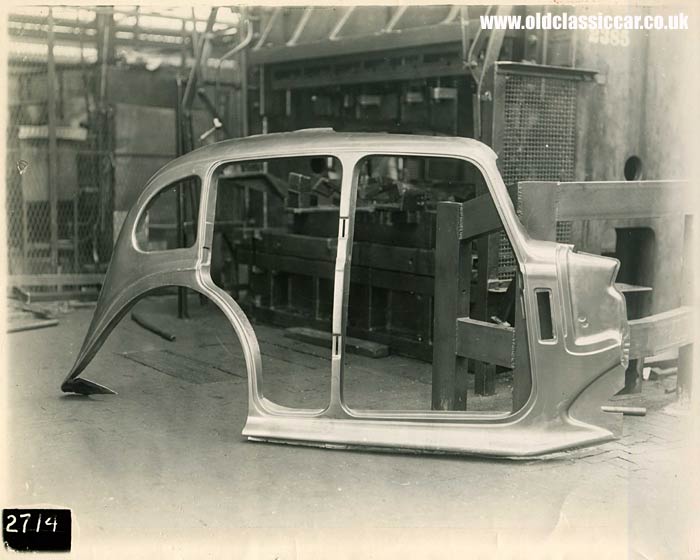 The next two images are factory shots, numbered 2714 and 2722 respectively. The first shows a body side panel during the production process, and hot off the presses. The aperture for the windscreen, and the top edge on the roof, are still to be dressed up at this point.