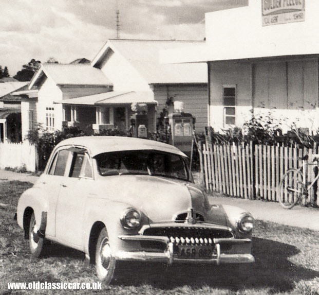 "This was the first of dad's many Holdens and it was a very good car. Like all the early Holdens it had a three speed gearbox with the lever under the steering wheel and on the steering column. The shift from first to second was a heck of a long travel. You pushed the lever up, and when you reached neutral, pushed down and then up to get second. Top gear was easier. It was straight down from second. It was a "H" pattern. The FJ had heaps of room with big front and rear bench seats. You could seat six adults easy and the boot was huge. The motor was easy to work on with so much air space around it you could almost stand in the engine bay. Its achilles heel was overheating in the Australian summer, and it was a common sight to see FJ's pulled up beside the road going up mountains with overheating problems. We soon learnt that the trick was to take the thermostat out when going on long trips. Because of where this was placed, it was a very easy job. It was a very good car. It looked good, went well, was comfortable and suited the roads of the day. You will note in the background that there was a *Golden Fleece dealer located next to our house."