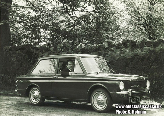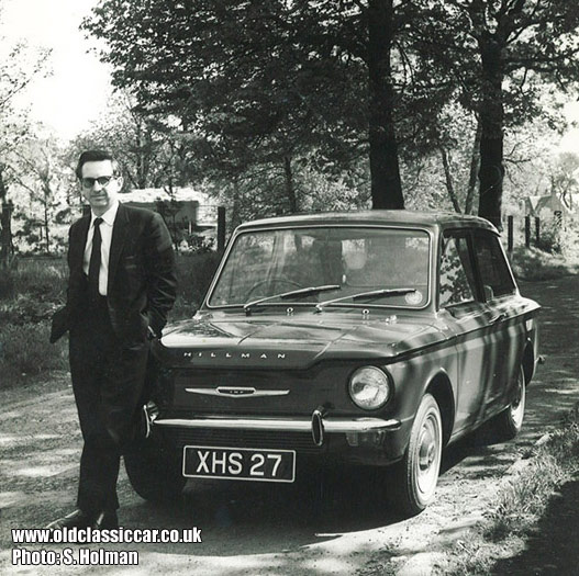The second of Steve's photos is a head-on shot of the Imp, with its owner looking very dapper, stood alongside the diminutive rear-engined Hillman.