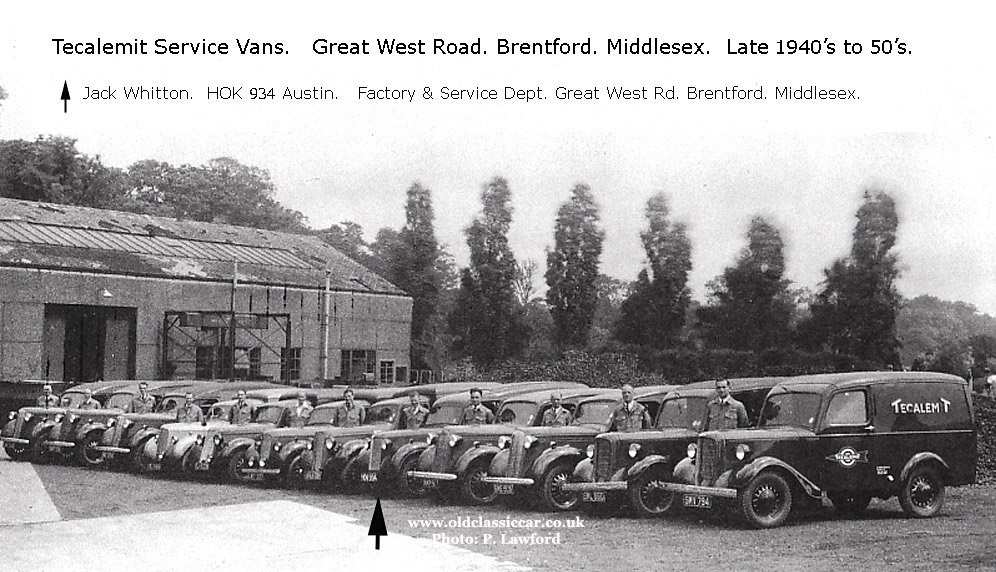 Peter L emailed over this old photo a little while ago, and to be honest it could have been placed on a number of pages on OCC given the variety of vans that are in evidence here. The Bradfords though are the clearest, hence the photo finding its way here. Two of Jowett's finest are closest to the camera. Alongside the Bradfords are a pair of Bedfords, then an Austin. Bedfords occupy the furthest three positions in the line-up, and I'm sure I can see a couple of Commers. All the vehicles formed part of a fleet of Tecalemit service vans, the company selling tools to private motorists and garages alike. Regarding the chap with the arrow pointing to him, Peters adds:"Jack Whitton was my sister's father-in-law. He started his own business in the 1950s and along with his two sons they formed Hydrair Ltd. Now one of the world's leading companies that manufacture ink pumping systems. The name Hydrair comes from the amalgamation of HYDraulics and AIR, pneumatics. Systems on which the origins of the company are based."