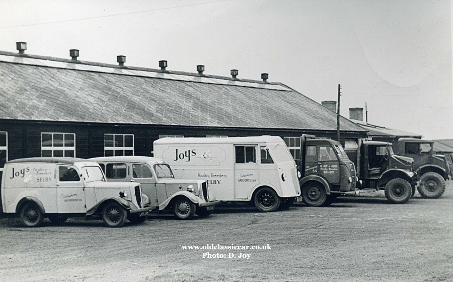 Parked alongside the Jowetts is a Morris PV, also signwritten in the Joys Poultry Breeders livery. Next to the Morris is an Austin K8, and also two de-mobbed ex-military vehicles - CMP (Canadian Military Pattern) Chevrolet and a CMP Ford.