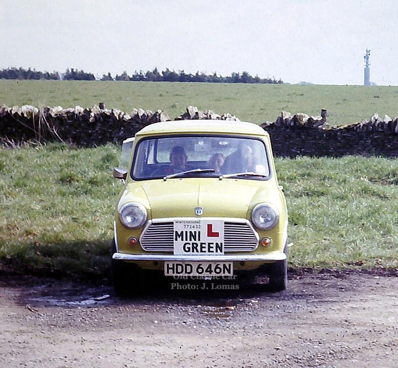 The second of John's Mk3 Mini photos is a head-on view of another driving school example, this time a yellowy-green example (Citron), chosen to match the name of the driving school (Mini Green). HDD 646N is shown here near Ozleworth, in Gloucestershire.