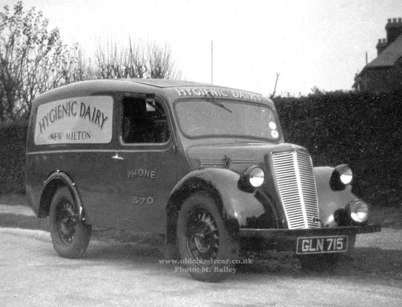 The van in question is registered GLN 715, and is signwritten in the livery of the dairy owned by Malcolm's father, namely the Hygienic Dairy of New Milton, Hampshire. The LN (London) series came into being in October 1941. Civilian new-vehicle registrations during WW2 were few and far between, and proof that the vehicle was required for an essential service in the area was required before such a purchase would even be considered by the local authorities. The appearance of the 10cwt Y-van is very similar to that of Ford's E83W 10cwt light commercial, photos of which can be found on this page for comparison.