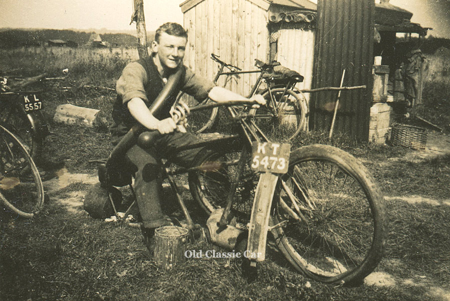 Was this gent a motorcycle enthusiast, dismantling a machine in order to restore it back to the road? Or was it being broken for parts? Just visible to the left is the rear of another 'bike, which looks to be complete, also sporting a Kent registration - KL 5557. It may well be that the dismantled 'bike is being used as a parts donor for the up-and-running example. We'll never know.
