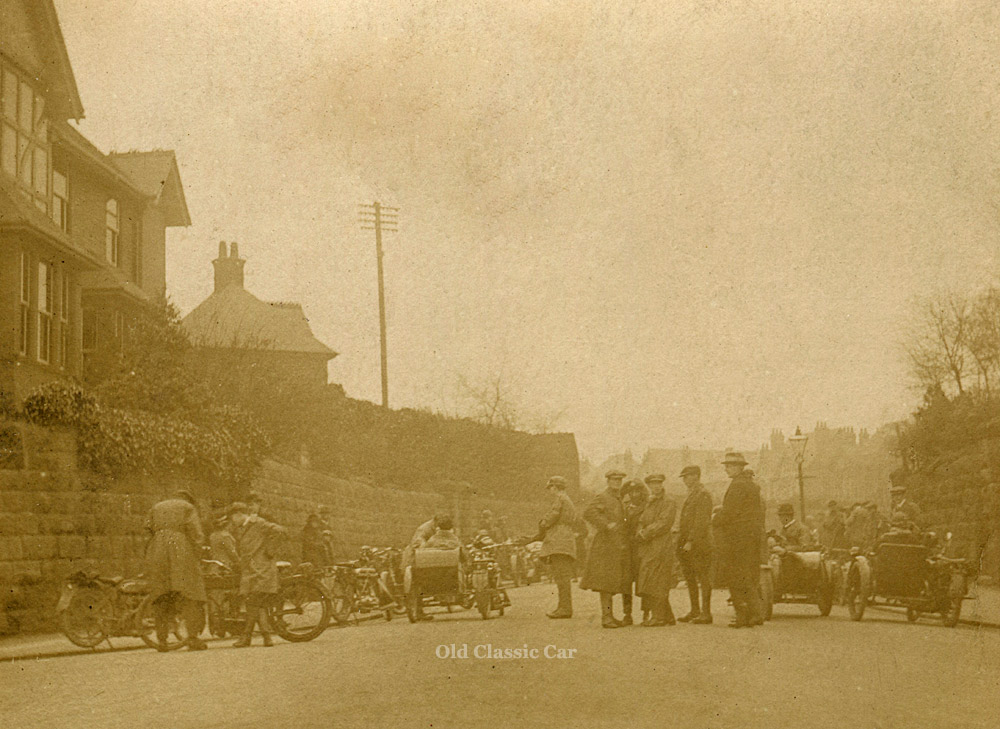 Many of the old motorcycle-related photos I've turned up over the years now feature in here, the image archive section of OCC (Old Classic Car). A link to the images index is given at the foot of this page, where you'll find links to period photos of various BSAs, Nortons, Scotts, Velocettes and Triumphs, plus the occasional Indian, Levis, and even a motor-powered tricycle. Pages of sidecar photographs may also be found there. This page will focus on very early (ie vintage/veteran) motorcycles, machines that have yet to be firmly identified. If you know your classic and vintage bikes, and can help with identifications for the pre-war motorcycles shown below, please drop me a line and I'll update the page. Several of the images shown below are also included in the following photo collection video.