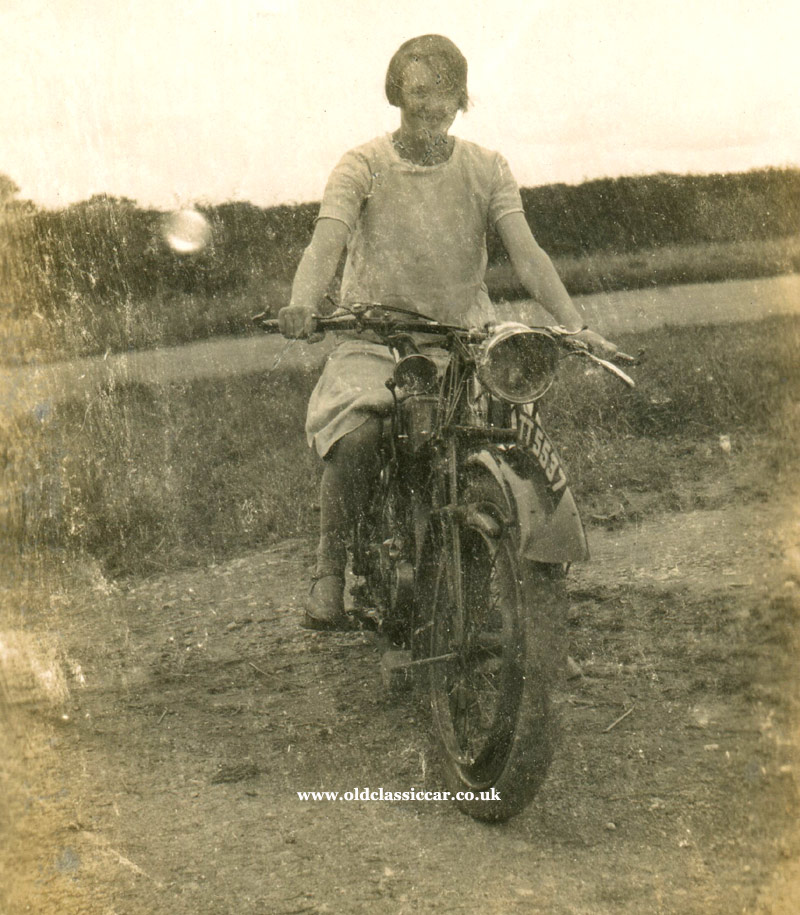 A young lady graces the following photograph. TT 5537 is this bike's registration, a Devon issue that ran from June 1924 to October 1926, putting this bike at around mid-1925 at first glance. Is there enough of the bike visible here to help i.d. it?