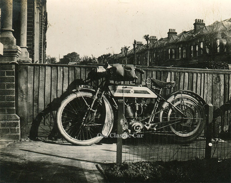 Two speed demons and an unidentified motorcycle, registered OT 3795 in Hampshire circa 1926/1927, are the subjects of the following b&w photo. There is just one clue as the location, attached to the wall of the house behind the two gents. A plaque reads "The Prudential Insurance Company Limited". The building looks more like a domestic house rather than an office, but why would it have a business' name plate next to the front door? The material over the front door opening looks a little odd too.