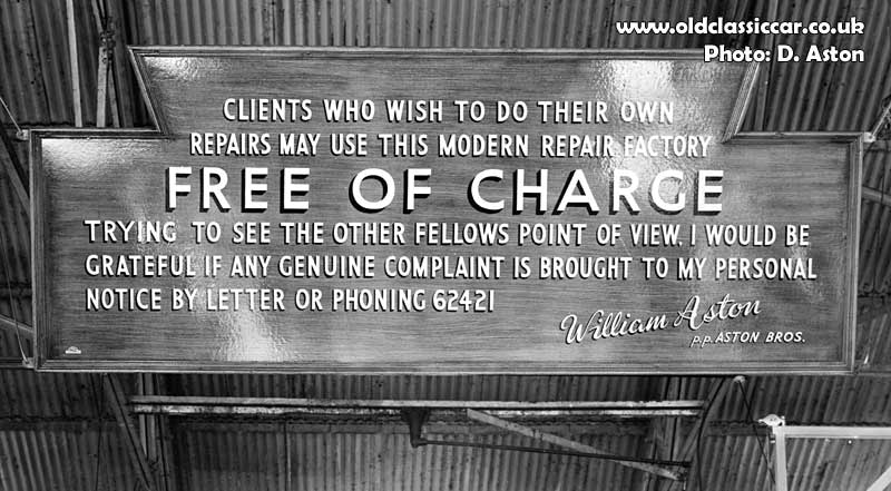 garage (perhaps the Aston Repair Factory, shown above) to work on their own car, for no charge whatsoever. A very generous offer indeed.
