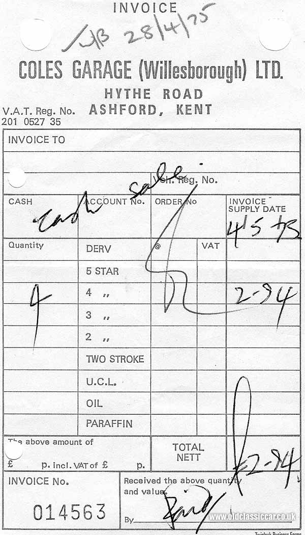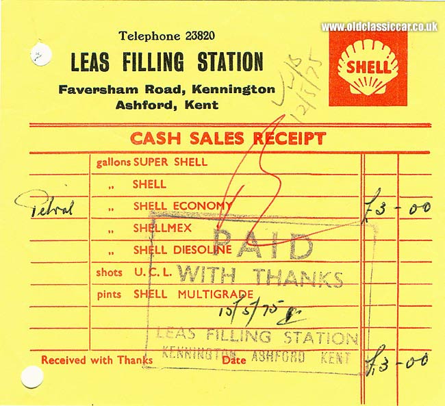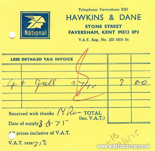 Petrol company receipts."Here are the fuel invoices I mentioned .. The Anning's garage at Hamstreet is interesting as it was on the opposite side of the road to Tippen's featured in your site already, about 200 yds down on the marsh side of the village, it outlasted Tippen's by a number of years and is still there though only as a repair and MOT garage - to think even this tiny village boasted two petrol stations. Austins garage still survives but Bill Austin retired many years ago, and Phill Usher, who as a boy was apprentice mechanic there, now runs it and still sells fuel. Again Lydd once had three filling stations and now has one with two pumps only - its sad when one drives around the area where I have been all my life and see all the things transport-wise that have gone, progress eh!". Thanks for sending them over Les. Old fuel receipts are just the kind of things that get chucked away, but can make for an unusual thing to collect in the world of motoring ephemera. Tippen's Garage, that Les refers to above, features in the period motoring photographs section of the site, and is shown again below. It was run by relatives of someone I know, who supplied me with the pictures. They show a classic garage of a type that would have been seen up and down the UK back in the 1950s, complete with a range of petrol pumps outside, promoting different brands and blends of leaded fuel. Tippen's Garage - 1950s picturesThese photos were sent over by David, whose relatives ran this garage cum filling station ..![]() ![]() If anyone out there has other petrol station memorabilia that they'd be willing to scan and send over, I'd like to feature it on this site somewhere please. Anything goes, whether old receipts like shown here, or photographs, books, or any other paperwork that still exists. I can be emailed via the contact page. [return to the Motoring Miscellanea section] |
