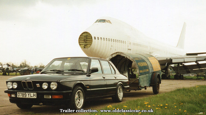 Shortly after collecting the Dodge in 1995, dad, my brother, and I headed off to the farm in Leicestershire where the trailer was being stored. Bruntingthorpe airfield wasn't too far away, so it only seemed right to pop in and have a look around. It also enabled us to take a few photographs of the trailer, hitched to the back of dad's E28-series BMW 528i. The BMW's suspension was firm, but even so probably wasn't really suited to the trailer's substantial weight. The trailer though, despite its size, towed ok, but what it must have been like, towing the loaded trailer to far-flung hillclimbs up in Scotland behind the wheezy old Ford, can only be imagined.