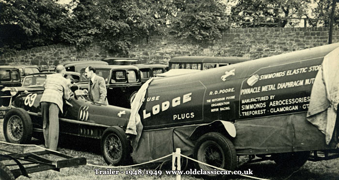 The trailer was designed by Dennis Poore as a high-speed method of trailering his racing cars around the country. According to his chief mechanic, Bill Lawes, who I met on a couple of occasions in the late 1990s, it was tested up to a speed of 97 mph. Whether this was on a convenient length of A-road, or on a quiet runway, I'm not quite sure. I also cannot be sure of the tow-car used for the task - it would have needed plenty of grunt. Prior to WW2, Poore was a demonstration driver for Atalanta Motors, a low-volume producer of very smart, powerful, four- and twelve-cylinder motor-cars. The V12 Atalantas were advertised as being capable of 100+ mph. Perhaps the trailer was attached somehow to a development car, in order to test the trailer's high-speed characteristics? The answer to this will probably remain lost in the mists of time.
