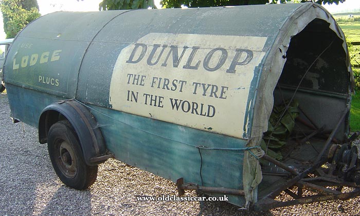 Corner-mounted jacks allow the trailer to be tilted at a steep angle, so that the car being transported could be winched in without the need for ramps. The following photograph I found completely by accident, while searching for something else on eBay. Fortunately I was the only bidder! I suspect that this dates to about 1948, or possibly 1949. At the time, Poore had teamed up with Alfa Romeo P3 driver Ken Hutchison, to form the Hutchison-Poore Motor Racing Organization. The jointly-named legend was, at the time, signwritten on the side of the trailer. By this time, a number of modifications had been made. The key one is the replacement of the upper canvas covering, with the aluminium canopy that Bill Lawes refers to in his letter. As well as being a more substantial creation, it also allowed for sponsor logos to be shown, similar in subject to those that went on to appear on the Dodge transporter. The Lodge Spark Plugs sign remains on the trailer to this day, albeit a little faded. However the promotion for Simmonds Aerocessories was replaced in later times by another for Dunlop tyres, and is still there now. The Simmonds graphics could well be there still, painted over by the Dunlop advertisement, but unless I sand off the top layer(s) of paint there's no way of knowing.