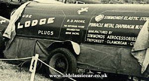 "... This Ford was always under-powered and had very dodgy brakes. I fitted a 32-stud motor and 4 speed box, but it was always deficient ... [the trailer] was in existence when I started with Poore in 1946-7. It was reputed to be designed by him, and to be safe at 100mph. The furthest it achieved was 97 mph and the tow vehicle ran out of steam. I replaced the suspension and carried out various reinforcing jobs. I also made the canopy. It was a great step forward when the Dodge came along."