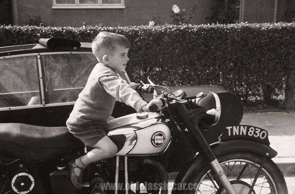 Kevin kindly sent over this next sidecar photo. Dating to the early 1960s, it shows him sat on the saddle of his dad's Norton (model anyone?). Registered TNN 830, the Norton is seen parked outside the family home in Nottingham.