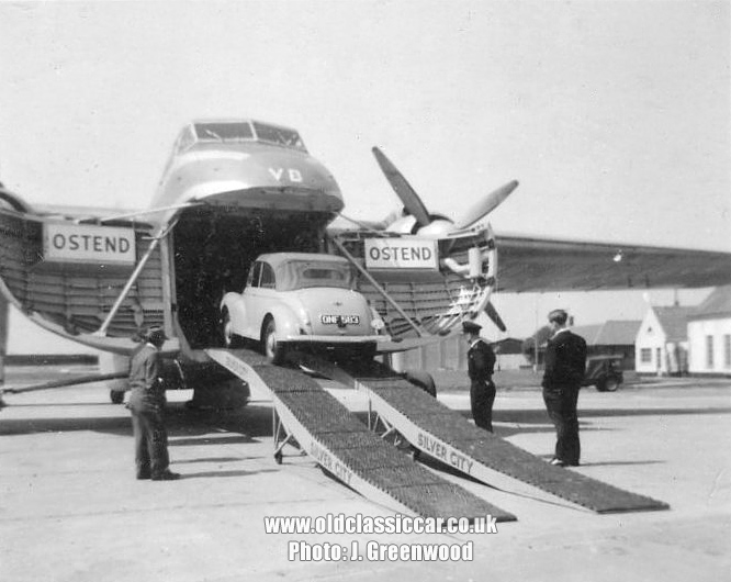 Jeremy kindly sent over the next snapshot of a Silver City Bristol Freighter. In this image, his family's Morris Minor tourer is shown while being loaded into the aircraft at Lydd. The date of this photo was May 1956. His parents and grandparents undertook a round trip to Italy and back in the Minor, to visit WW1 sites that his grandfather had associations with. The Minor was registered ONF 583, dating it to 1954.