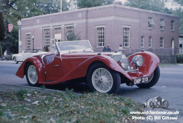 The first of Bill's photographs is a head-on view of this English-registered car, DMP 219, presumably not long after it had been shipped there. The registration points to it first being put on the road in the early months of 1936, in London, before being exported in later years. It turns out that DMP 219 is the first car built, prototype X101, and was shipped to the States at the request of illustrator and new-owner of the car, Charley Davison, following an advertisement spotted in the British magazine The Motor. An article about his purchase of the Squire can be found in this PDF scan of a magazine article from 1967: PDF document (external link).
