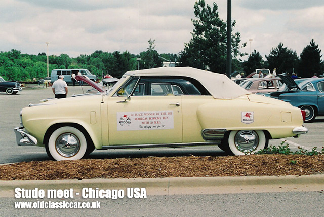 Classic Studebakers.A US event for fans of Studes of all ages at this gathering.Thanks to DM, who sent me these pics quite some time ago, all of which were taken at a Studebaker show, held in Chicago a few years back.Most of the popular Stude models were featured, and these are just a sample of the cars and pickups that were in this event. Models featured here include Avantis, pickups, Champions, a wonderful '40 Commander, Lark, President and more. The cream Champion convertible is especially of interest, as the information on the door tells show-goers that it won the 1951 Mobilgas Economy Run, at 28mpg - "The thrifty one for '51". |