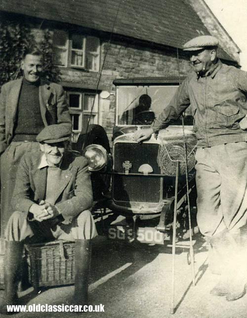 The last of these photographs (there are more, but very similar to those shown already) is perhaps my favourite of the lot. It shows a head-on view of the Sunbeam with three cheery chaps in the foreground, all set for a day out fishing. Two motoring badges are in evidence on the Sunbeam. The righthand badge is for the Sunbeam Register, shaped to represent the rays of the rising sun. In later years the Sunbeam Register expanded to also include Talbot and Darracq motor-cars, thus forming the STD Register. Thanks to Colin for the update on the badge. Jonathan from the forum adds this about SG 9500: "The Sunbeam 14/40 was chassis no 5431D and belonged at one time to a Ken Wilson, who was Sunbeam Register member no 742. The register was formed in 1950 and the badge was a semi circle bearing the words "Sunbeam Register" over a sunrise. That is the badge on the right looking at the car with the fishermen." Thanks both for your input :-)