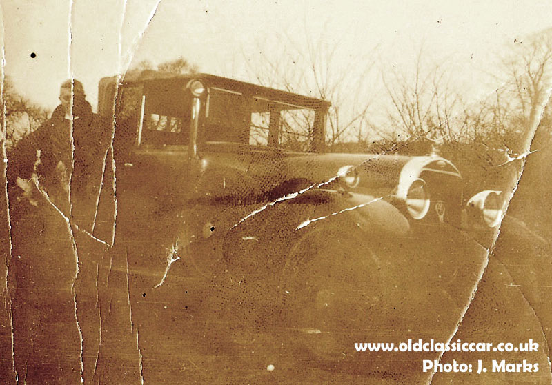 The following two photos were sent over, in the hope that the car in them might be identified. A few enquiries lead to it being confirmed as a mid-1920s Sunbeam, similar but not identical to the car featured above. The photographs are in a poor state. Despite this, they're worth including if only because despite their crumpled, well-thumbed, condition, the scenes are important enough to the family that owns them that they survive to this day, some ninety or so years later. They show their age, just like a preserved rather than over-restored vintage car, scuffs, scrapes and all, and usually the better for it.