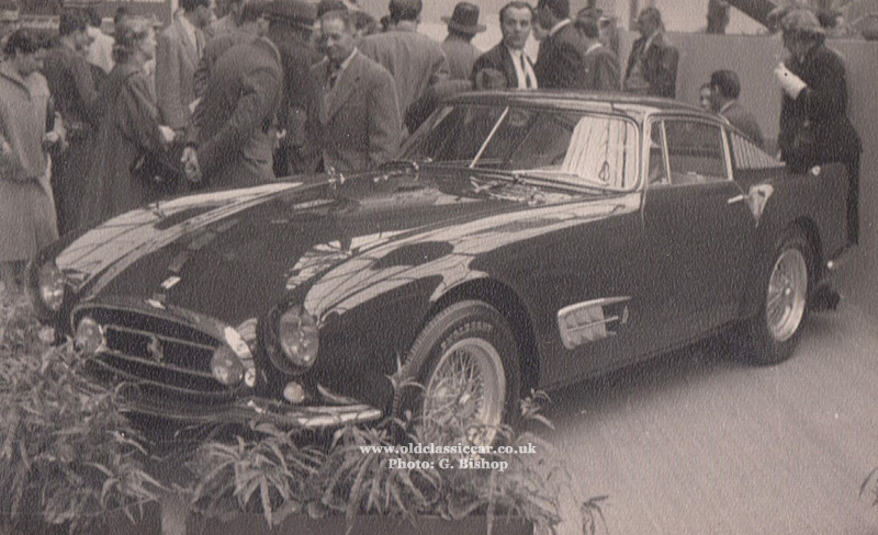 Two photographs of a 250 Europa GT, the first from alongside the two-door coupe, the second from the passenger front corner. Coachwork is by Pinin Farina.