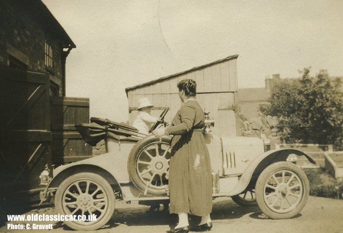 Bill owns the following photograph. It shows various members of his family in 1916, stood alongside a vintage tourer. The distinctive coachwork matches that of the car above, confirming it as another example of Standard Model S, or "Rhyl". The spare wheel is missing on this example, although the bracket for it can be seen on the Standard's running board. Note the tailored covers