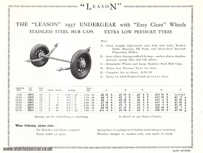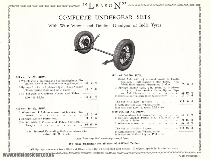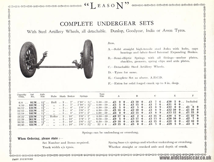 axle to bolt beneath it. 'Complete Undergear Sets' were on offer to suit all needs,