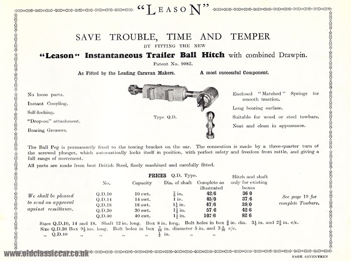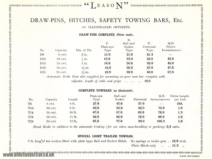 Page 16 lists the first of the towing accessories that could be purchased from Joseph Lea & Son, in the shape of various