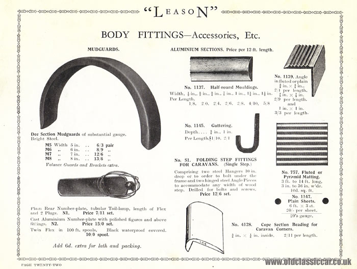 as they are known nowadays), the Leason 'Sturdy Jacks', body fittings such as wings, numberplates, half-round