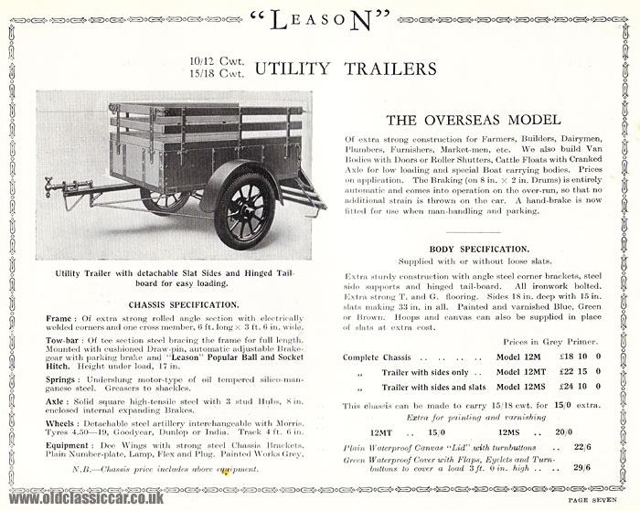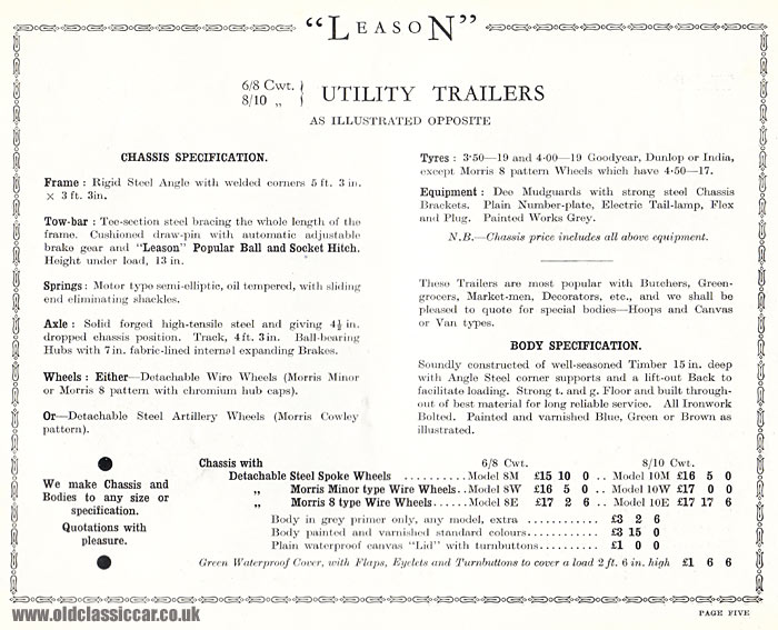5 summarises the key points and advantages of the Leason 6/8cwt and 8/10cwt utility trailers. They could