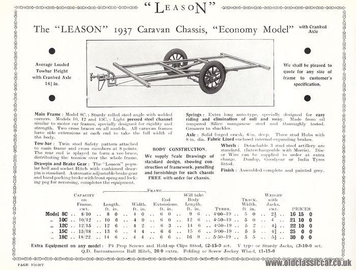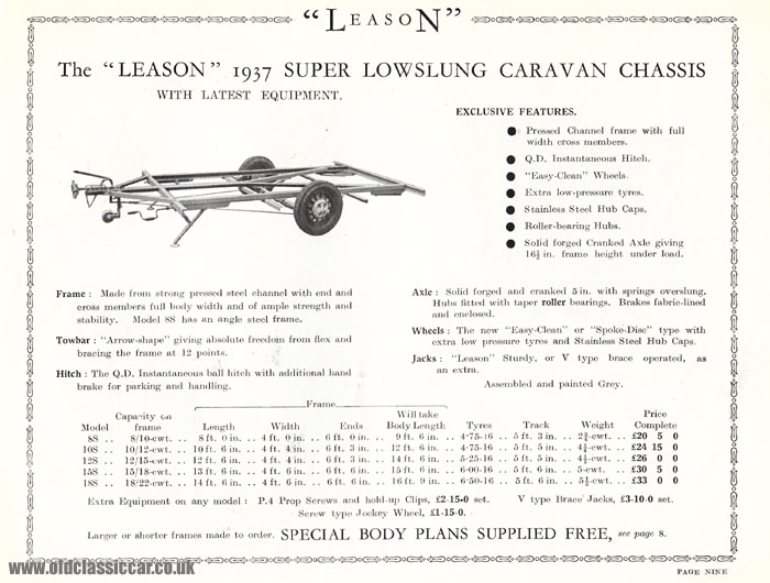 featured the 'Super Lowslung' caravan chassis for 1937, which came as standard with the Q.D. hitch, corner lifts,