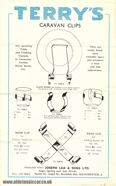 And finally, a leaflet that came with the Leason brochure, specifying the Terry's caravan clips