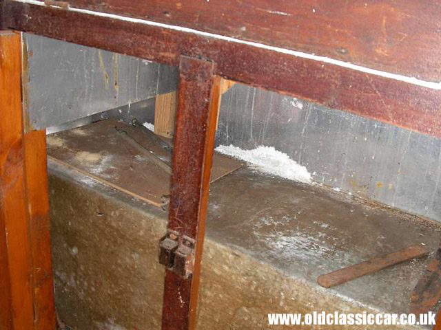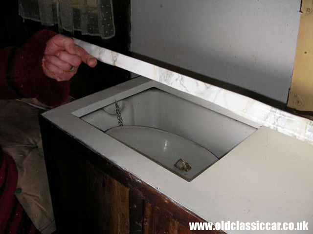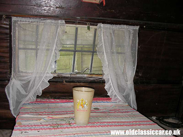 is the original pealing 1930's lino. The room is surprising low inside, I am 6' 2" and had to bow my head even