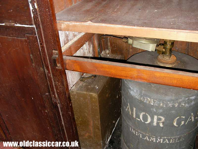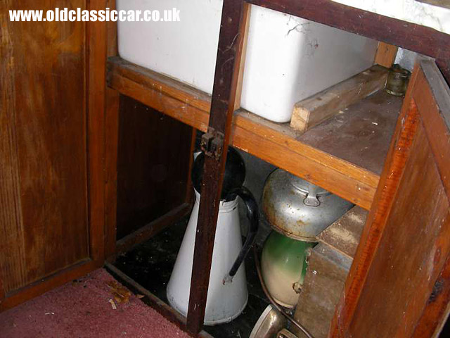 has the old gass bottle! A wardrobe door opens out to partition-off the end bedroom. Under the carpet