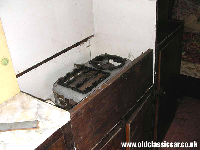 a settee to a double. The horsehair matresses look shot. The 'Belfast' sink is good and stove even